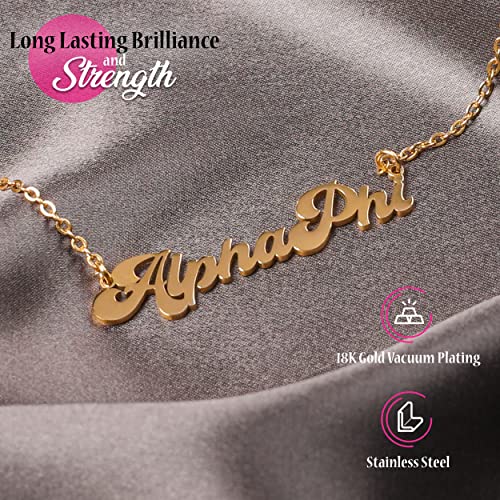 Sorority browse Phi Mu Necklace — Retro Font Design with 18K Gold Plating, Phi Mu Gifts for Women
