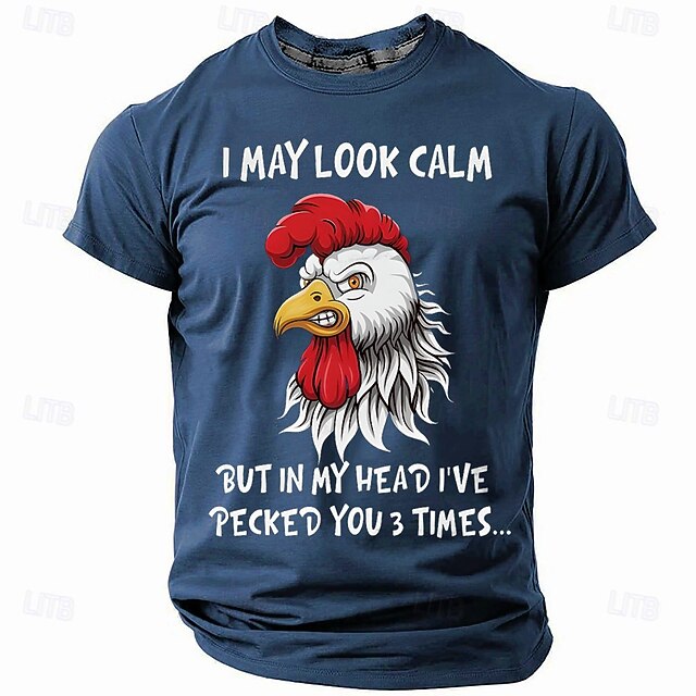 Men's Rooster Letter Print T Shirt Short Sleeve T shirt 3D Print Crew Neck Shirt Fashion Athleisure Street Sports Outdoor Daily Black Red Blue Summer Spring Clothing Apparel S M L XL XXL XXXL 5