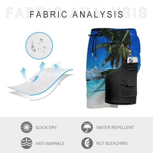 More information about Praslin Island Surfing Beach Scenic View Mens Swim Trunks Quick Dry Beach Board Shorts with Pockets