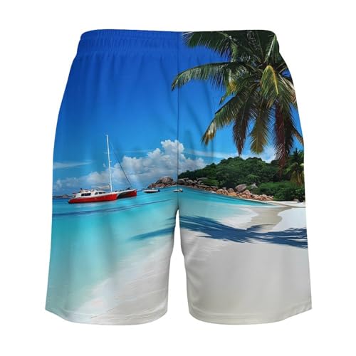 Praslin Island Surfing Beach Scenic View Mens Swim Trunks Quick Dry Beach Board Shorts with Pockets 6