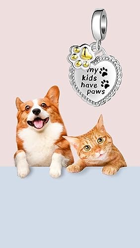 NanMuc Heart Paw Print Charm Compatible With Pandora Bracelet Puppy Dog Pet Cat Charm Aninmal Bead