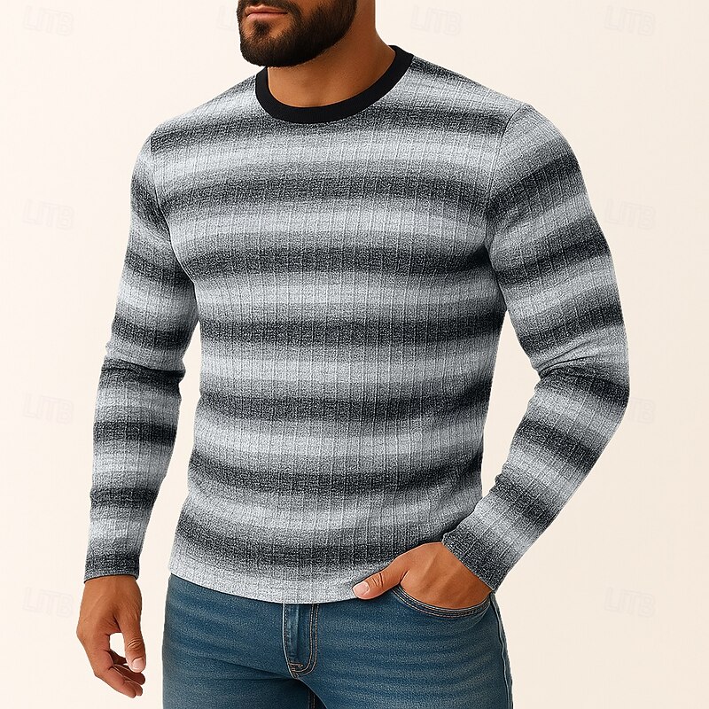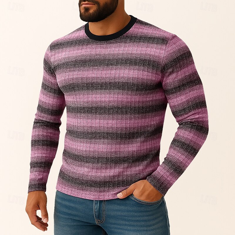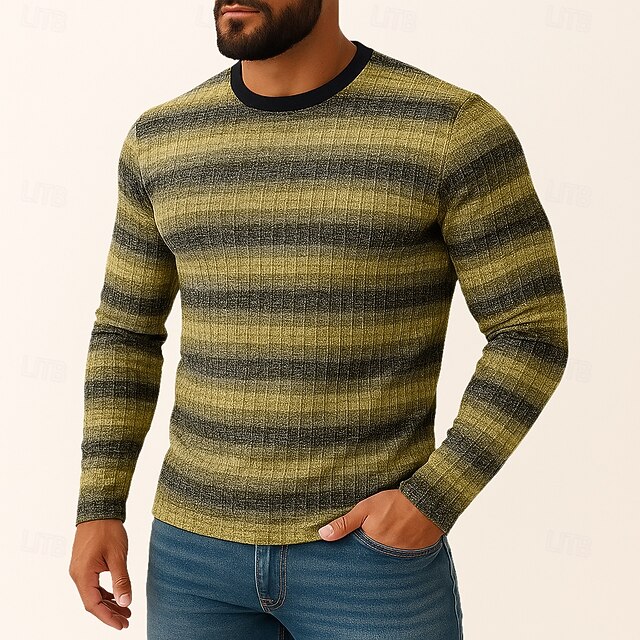 More information about Men's Muscle Shirt Ribbed Knit tee Tee Top Long Sleeve Shirt Long Sleeve Crew Neck Summer All Seasons Horizontal Stripes Daily Casual Street Style Ribbed Outdoor Street Causal Pink Yellow khaki Top