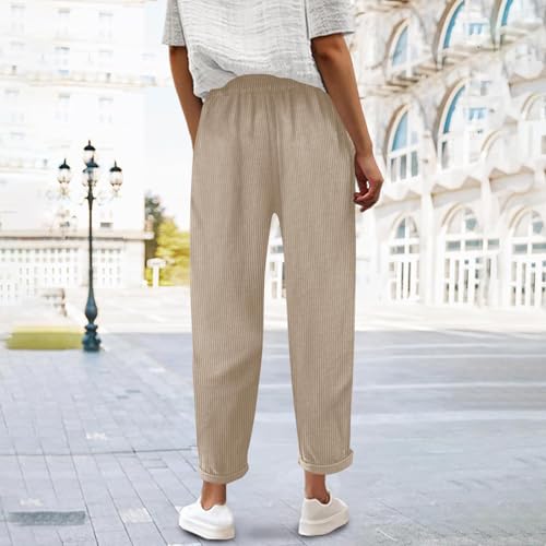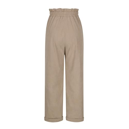 Corduroy Pants Women Dressy Casual Straight Leg Drawstring High Waisted Cuffed Trousers Loose Comfy Slacks with Pockets
