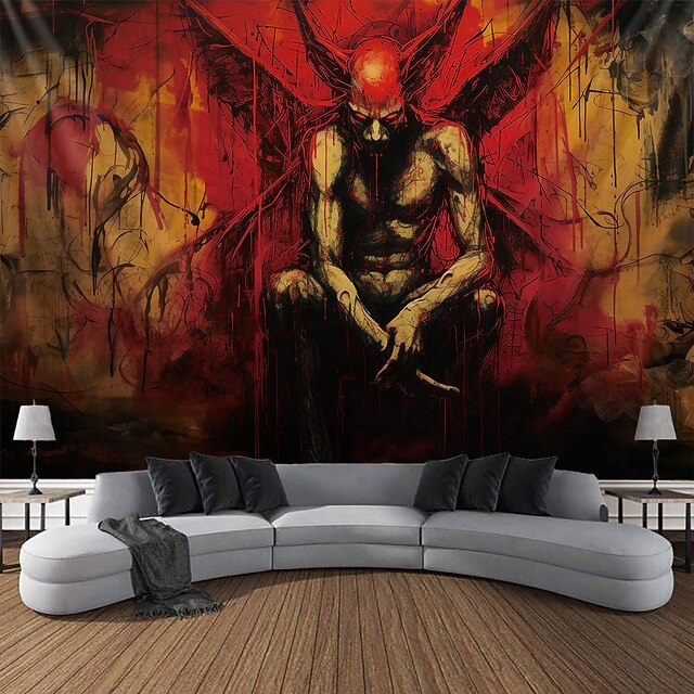 Halloween Devil Hanging Tapestry Wall Art Large Tapestry Mural Decor Photograph Backdrop Blanket Curtain Home Bedroom Living Room Decoration