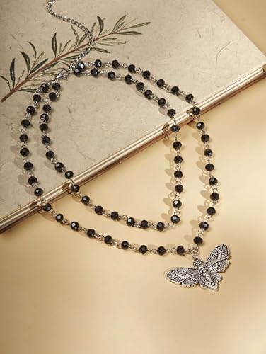 Sacina Layered Black Moth Skull Choker, Black Beaded Choker, Gothic Goth Necklace, Christmas Jewelry Gift for Women 1