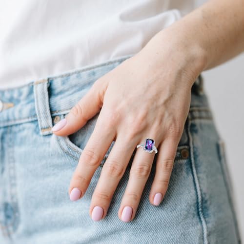 6.85CT Promise Rings for Her, 925 Sterling Silver Ring 8x12mm Simulated Mystic Rainbow Topaz CZ Halo Engagement Wedding Rings for Women 4
