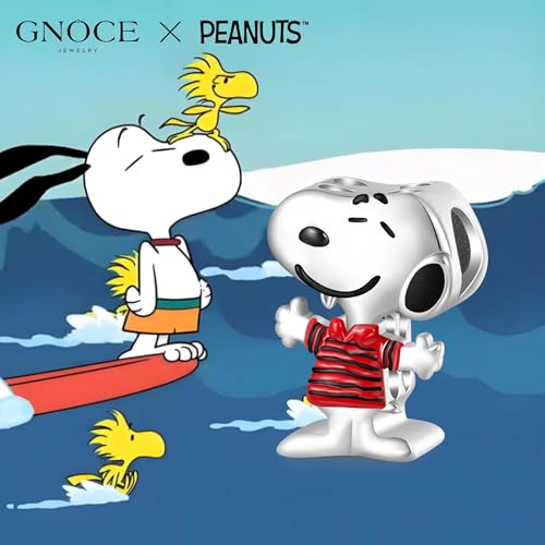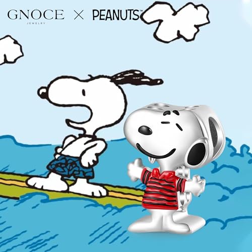 HOT ! GNOCE Peanuts Snoopy Striped Short-Sleeve Charm for Women, S925 Sterling Silver Dangle Charms for Women Wife, Valentine‘s Day, Mother’s Day Jewelry