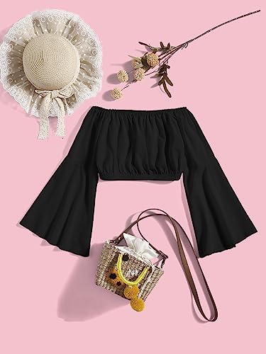 Floerns Girls Off The Shoulder Flounce Long Sleeve Ruched Blouse Crop Tops 5