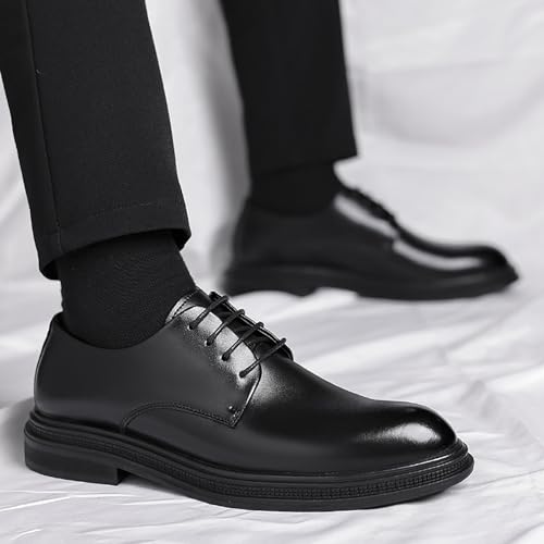 Men's Black Leather Dress Shoes - Lace-Up, Soft & Anti-Slip Rubber Sole, Comfortable Lining for Business, Weddings, and Daily Wear - Ideal for Professionals and Grooms 6
