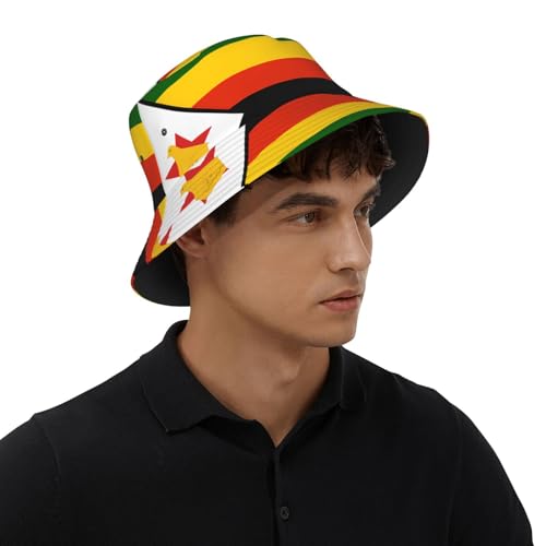 Flag of Zimbabwe Adult Unisex Sunshade Bucket hat, Non-Shrinking, Lightweight, Breathable, Foldable, Easy to Store Black 6