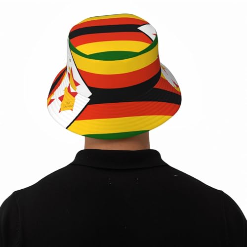 Flag of Zimbabwe Adult Unisex Sunshade Bucket hat, Non-Shrinking, Lightweight, Breathable, Foldable, Easy to Store Black 1