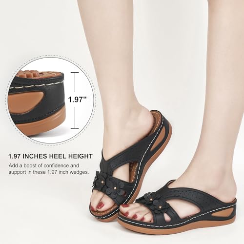 Ecetana Womens Sandals Dressy Summer Comfortable Slides with Flowers Casual Non Slip Platform Lightweight Wedge Shoes 2