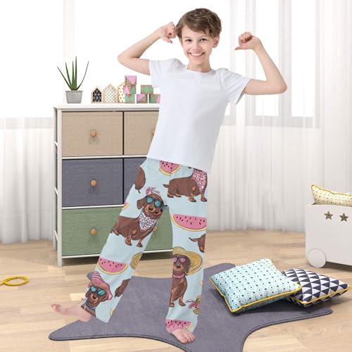 HOT ! ZZXXB Dachshund Watermelon Boys Long Pants Soft Trousers Elastic Waist Kids Lounge Bottoms with Pockets S-XL