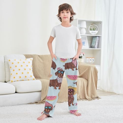 ZZXXB Dachshund Watermelon Boys Long Pants Soft Trousers Elastic Waist Kids Lounge Bottoms with Pockets S-XL 1