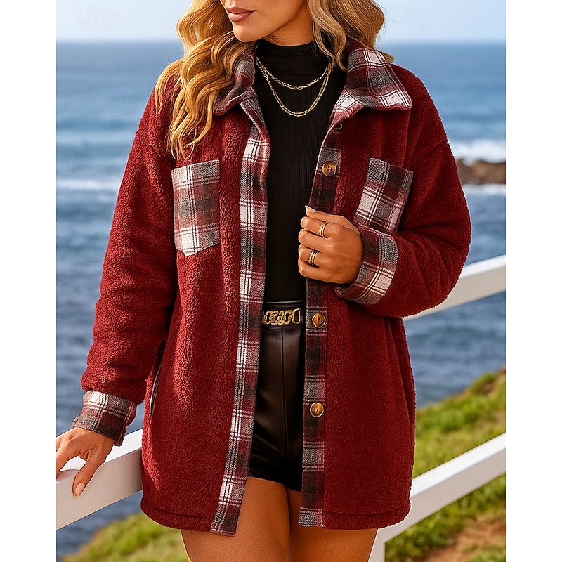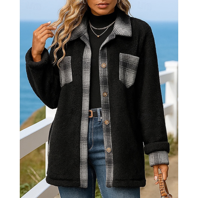 $31.99 - Women's Winter Coat Polar Fleece Jacket Buttons Long Sleeve Top Athleisure Plaid Checkered Windproof Warm Outdoor Travel Sports Sportswear Activewear Black White Red 2025. Shop for cheap Running Jackets online? Buy at lightinthebox.com on sale today!