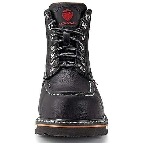 SUREWAY Mens Heavy Duty gentle/Composite/Steel Toe Work Boots for Men-snug,Goodyear Welt,Full Grain Leather,6 in Wedge Moc Toe Construction Boots/Shoes,Soft Toe White Sole,Size 11