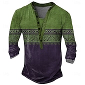 More information about Men's Geometric Ethnic T Shirt Henley Shirt Long Sleeve Designer Retro Vintage Ethnic Street Casual Daily Summer Spring Fall Dark Brown Green Blue khaki Henley Henley T-Shirt