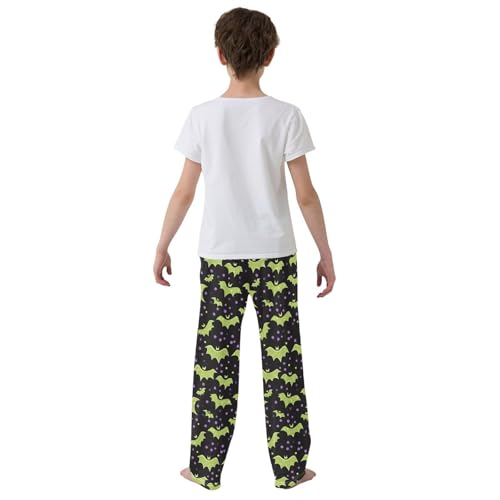 HOT ! Halloween Pajama Pants Green Bat Pattern Long Sleep Pants Lounge Bottoms