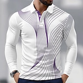 More information about Men's Geometric Line Polo Long Sleeve Polo Shirts Collared Shirts Business Casual Athleisure Daily Wear 3D Print Spring Fall Blue Purple Green