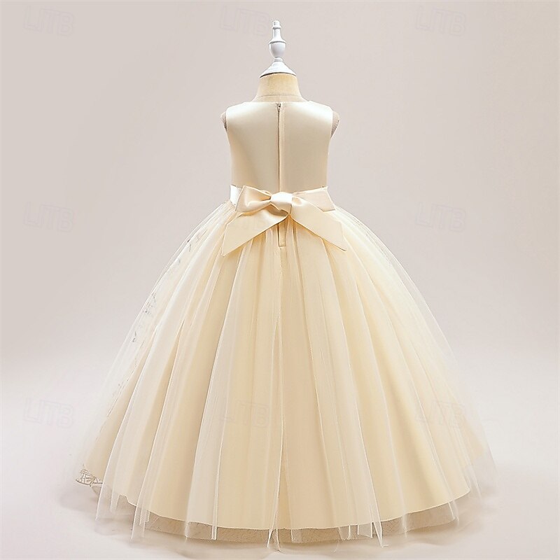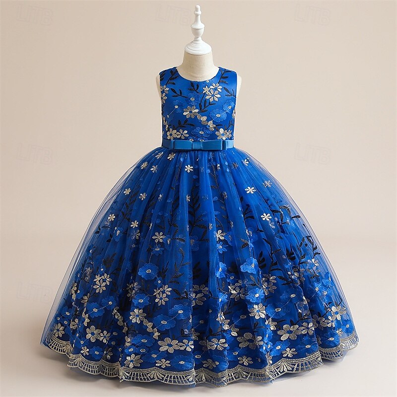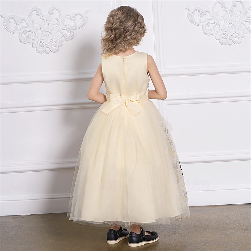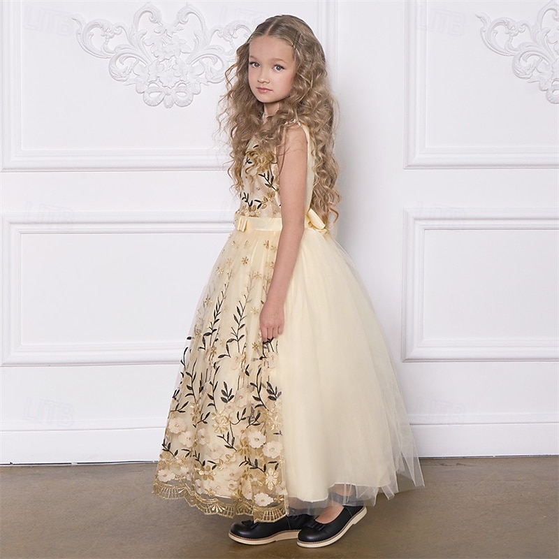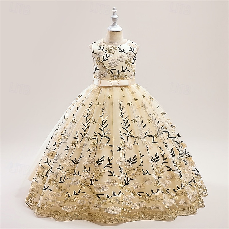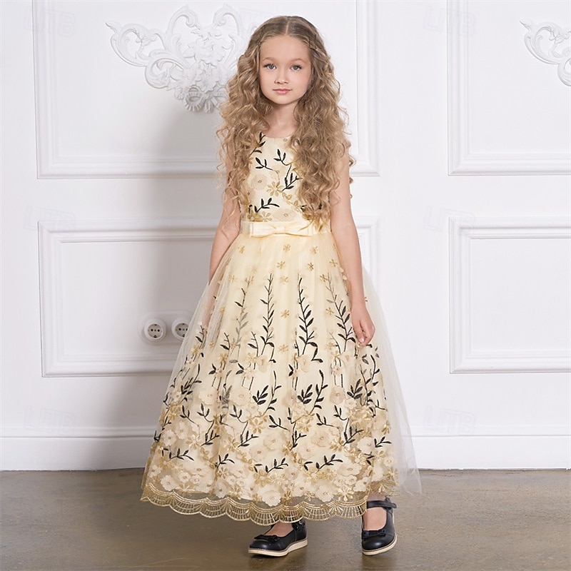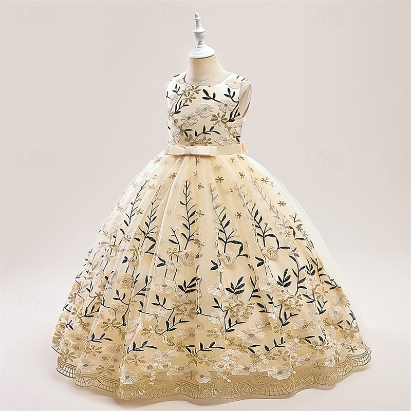 More information about Kids Girls' Party Dress Floral Sleeveless Performance Birthday Mesh Tie Knot Beautiful Sweet Polyester Maxi Party Dress Swing Dress A Line Dress Summer 4 years+ Champagne Blue Green