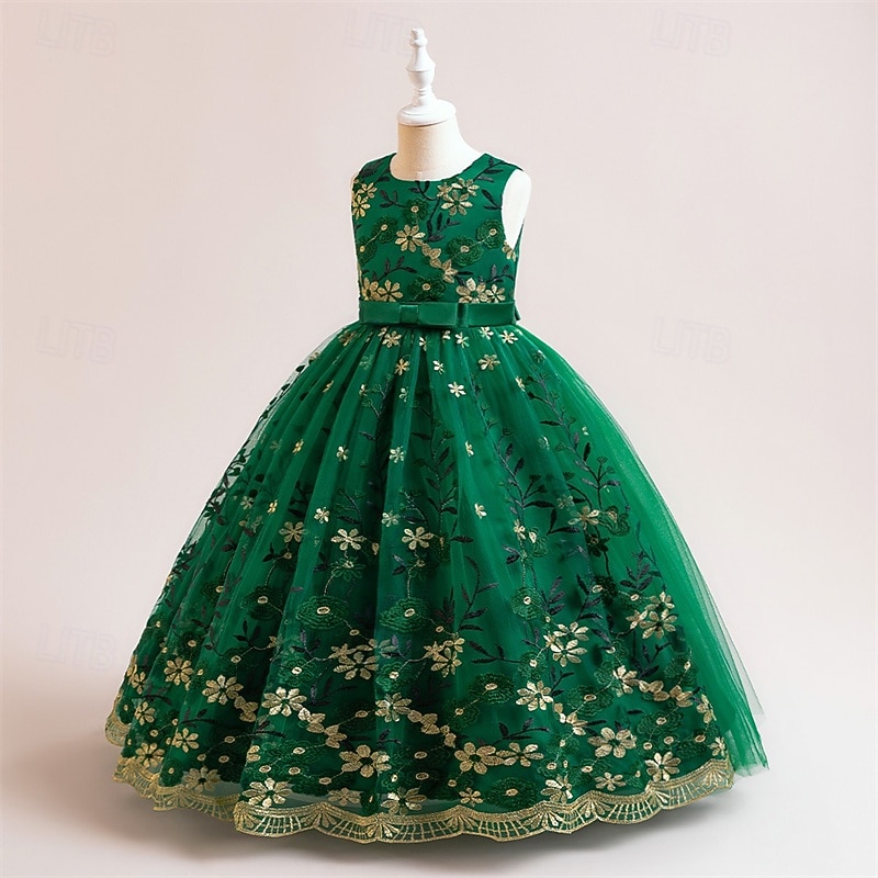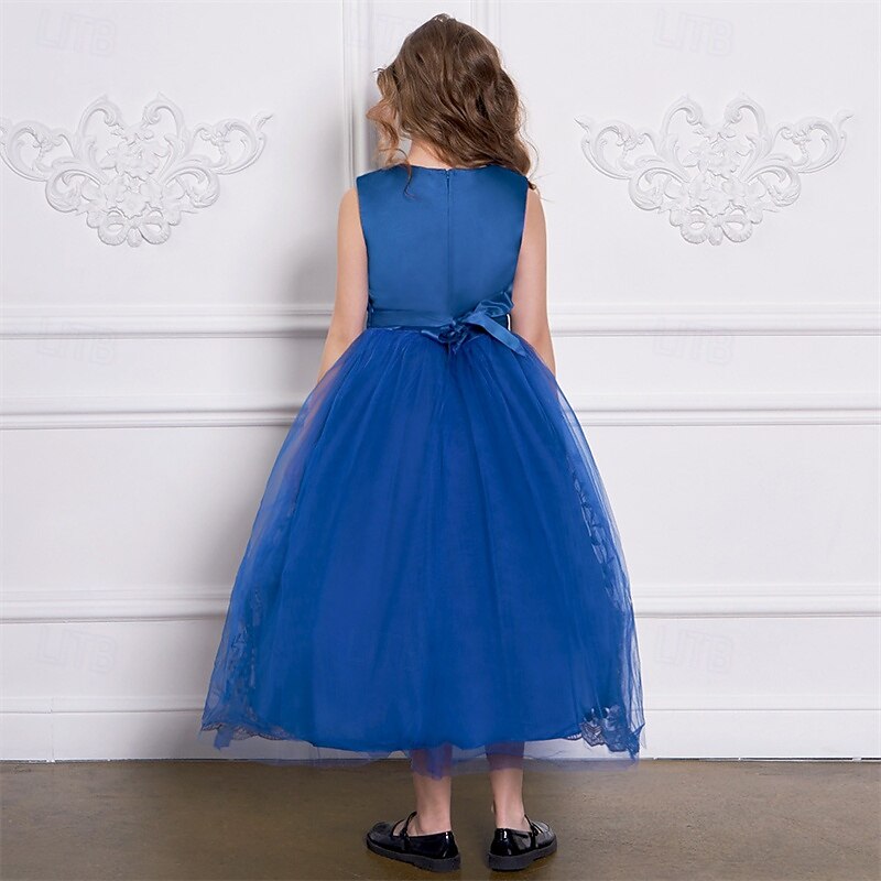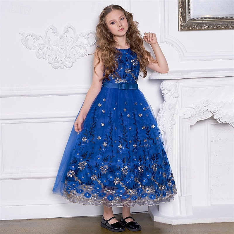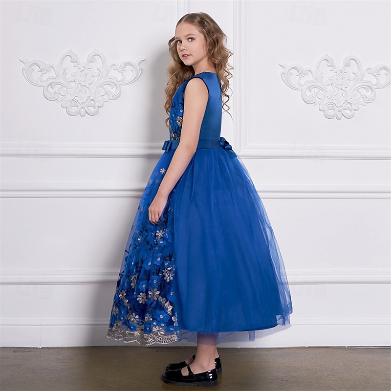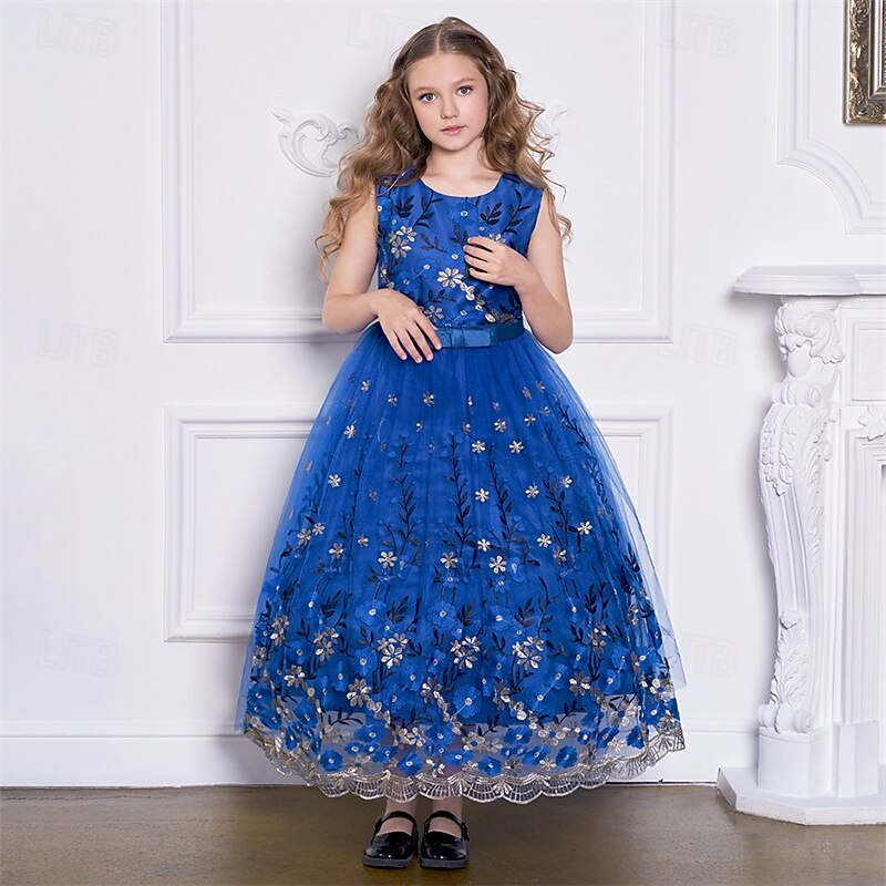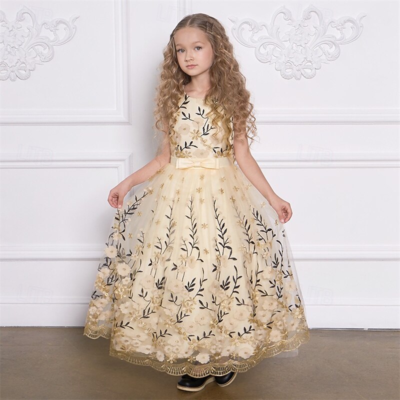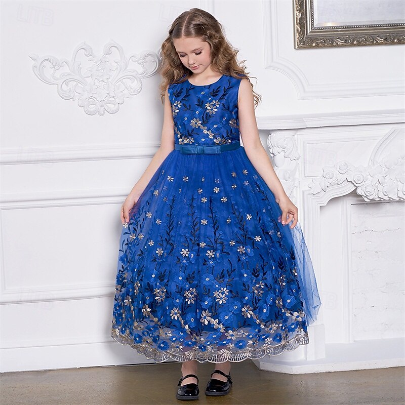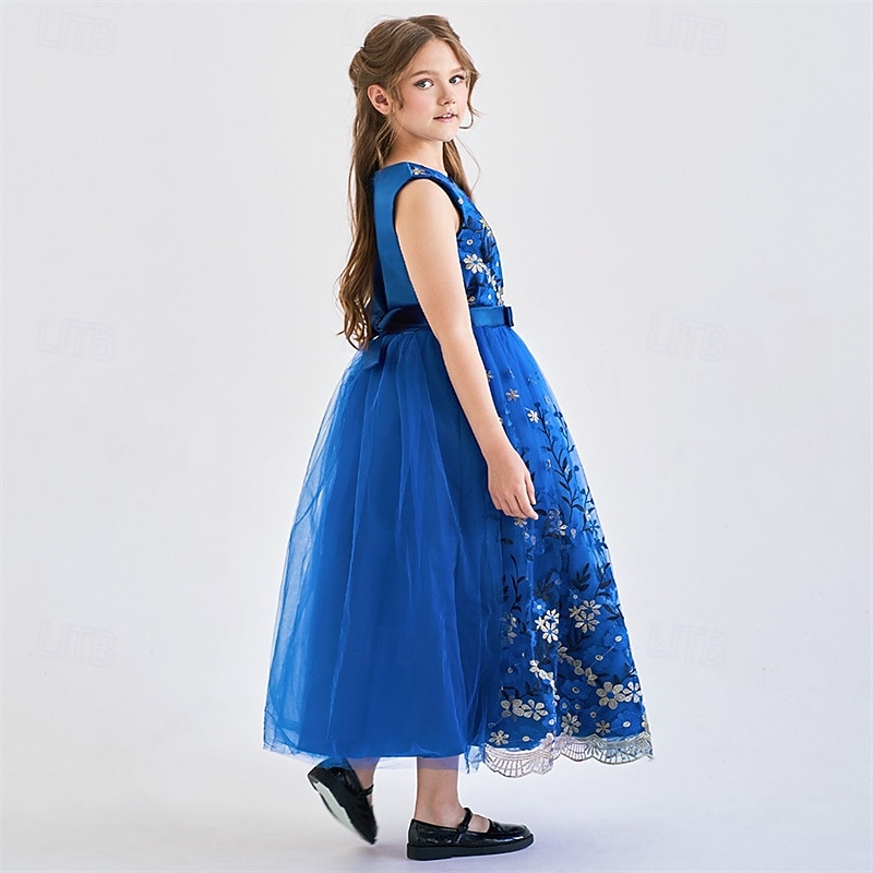 More information about Kids Girls' Party Dress Floral Sleeveless Performance Birthday Mesh Tie Knot Beautiful Sweet Polyester Maxi Party Dress Swing Dress A Line Dress Summer 4 years+ Champagne Blue Green