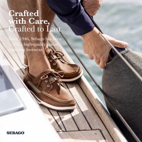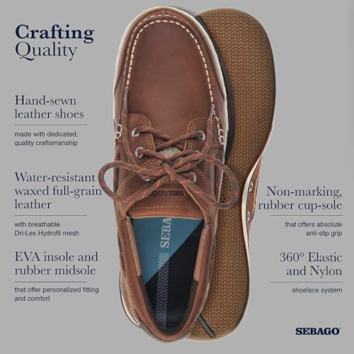More information about Sebago Triton Three Eyelets FGL Boat Shoes - Waxed Leather Moccasins with Breathable Mesh Lining, Comfy EVA Insole, and Strobel-Attached Rubber Outsole