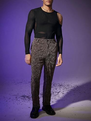 More information about COZYEASE Men's Cold Shoulder Hollow Out Long Sleeve Mesh Tee Slim Fit Sheer Asymmetrical Neck T Shirt Clubwear