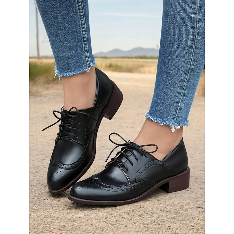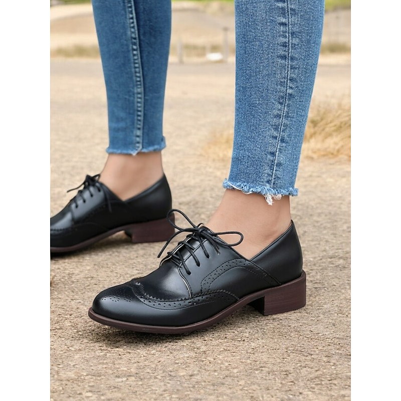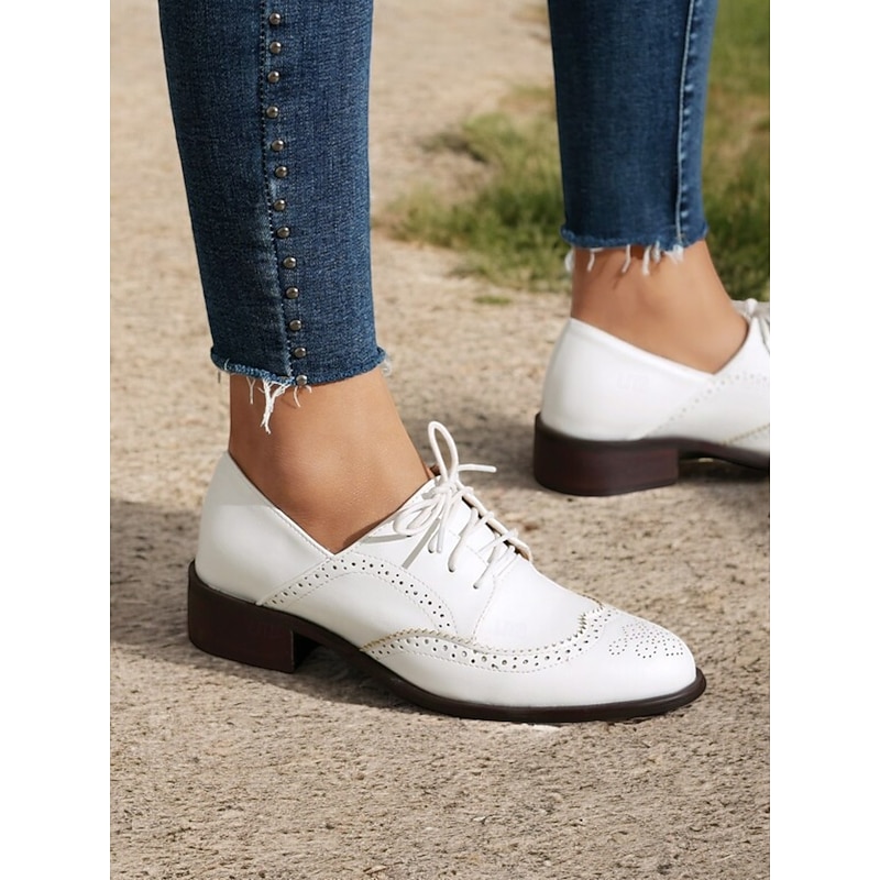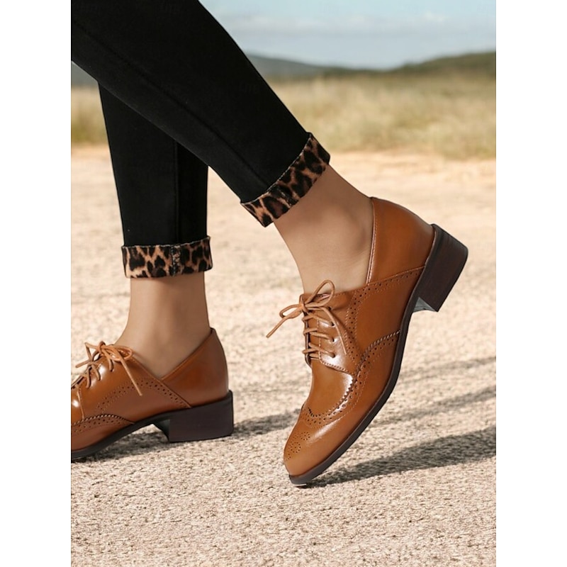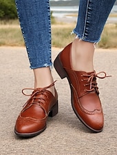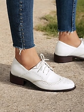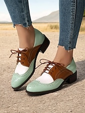Highlights [Fabric] : Crafted with high-quality PU for the upper and synthetic leather for the lining, these women's vintage Oxford shoes offer a breathable and soft feel, ensuring comfort throughout the day. The rubber outsole enhances durability and provides reliable traction. [Fit] : Featuring a comfortable and timeless round toe design, these shoes come with a chunky heel that adds a touch of elegance while ensuring stable and supportive walking. The lace-up closure allows for an adjustable fit, adding to the overall practicality and sophistication. [Design Highlights] : The classic brogue wingtip design is accentuated with intricate perforations and stitching, offering a vintage allure. The tri-color palette of mint green, brown, and white adds a refreshing and up-to-date touch, complemented by brown laces that provide sophisticated detailing. [Occasions] : Ideal for both casual and semi-formal settings, these shoes effortlessly blend elegance and comfort. Perfect for daily wear or work environments, they can seamlessly elevate a variety of outfits, making them a versatile wardrobe addition. [Size Notice] : These shoes are available in a range of sizes to accommodate different preferences, from US5.5 to US10.5. It is recommended to select your usual size for a standard fit.
