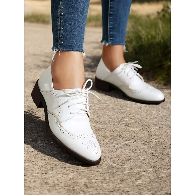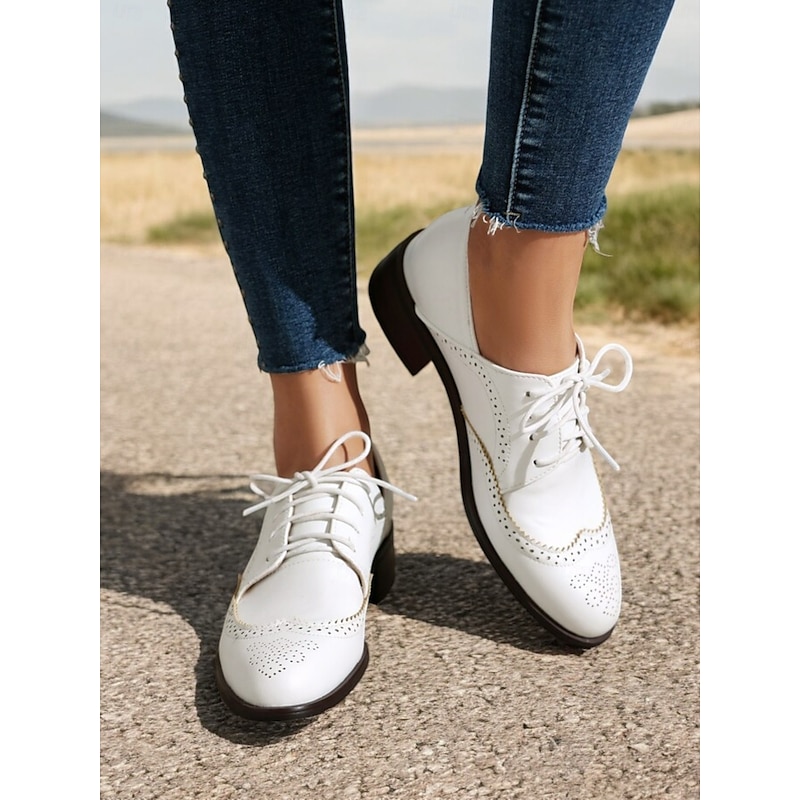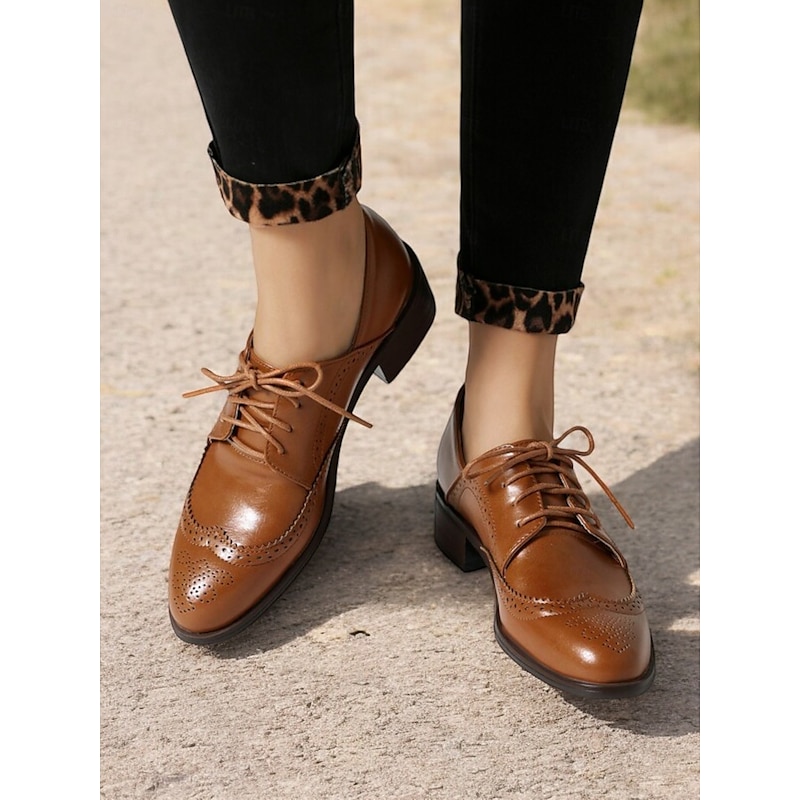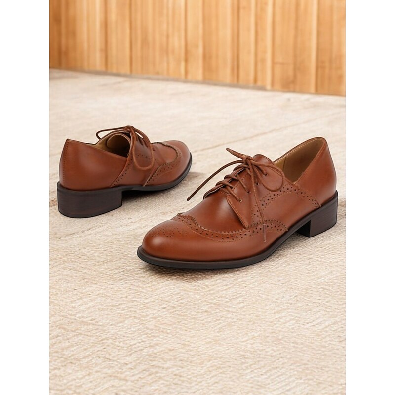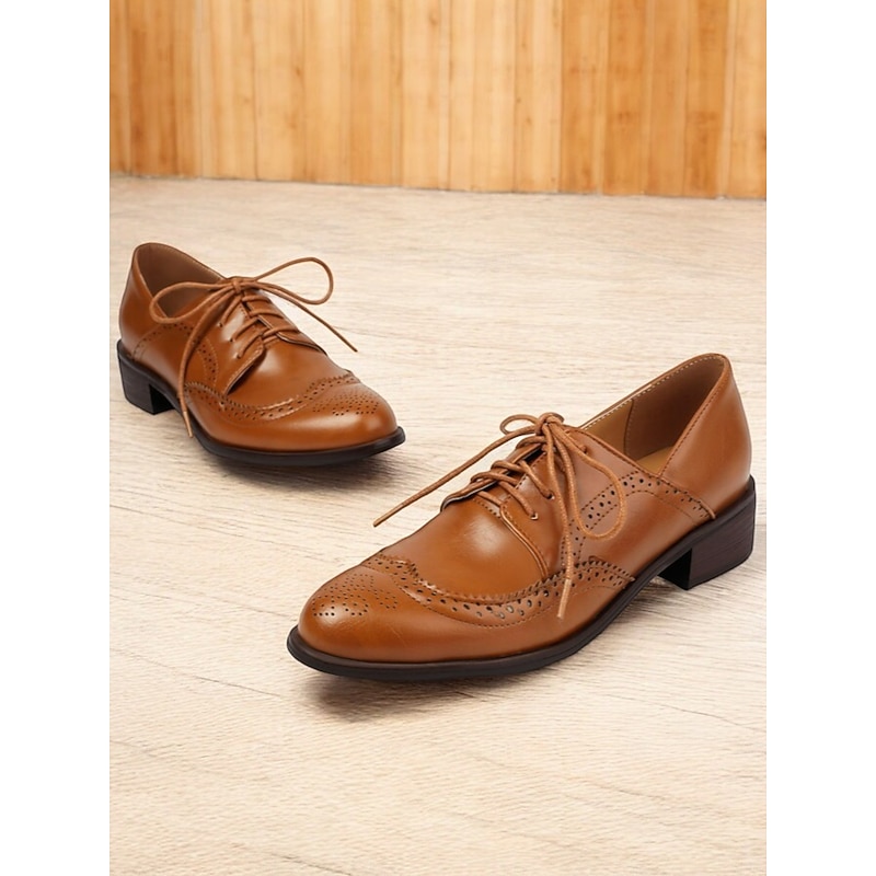 Women's Vintage Oxford Shoes in Mint Green, Brown, and White - Lace-Up Brogue Wingtip Dress Shoes for Casual and Semi-Formal Wear 24