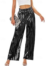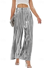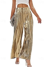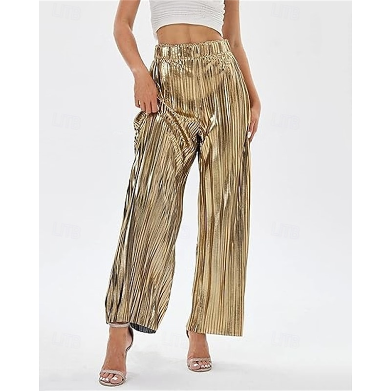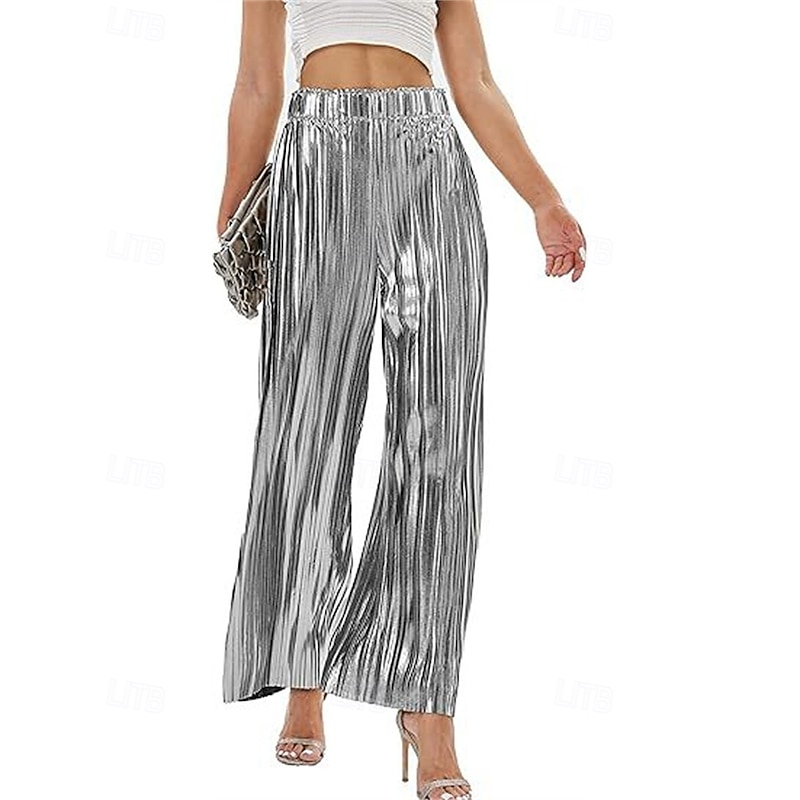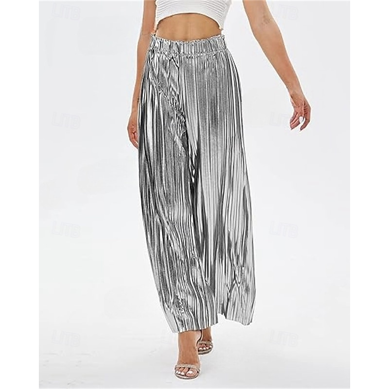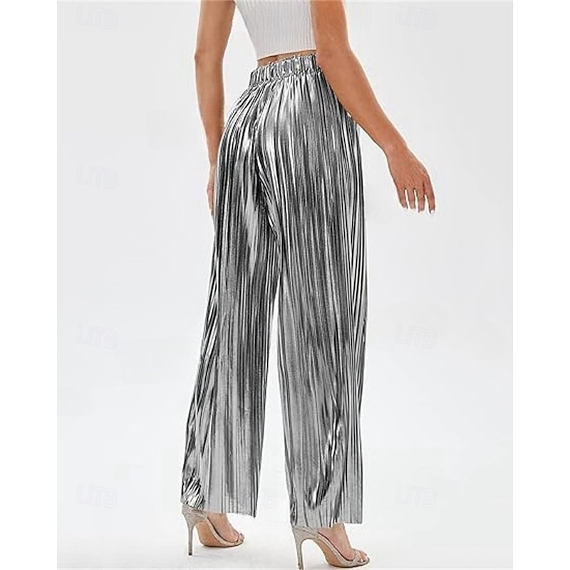 Women's Pants Trousers Palazzo Pants Fashion Streetwear Full Length High Waist Plain Elastic Waist Breathability snug Micro-elastic Party Going out Silver Black Gold Spring Fall Regular Fit