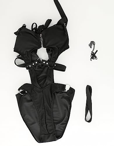More information about MEOWCOS Women's One Piece Swimsuits Gothic Swimsuit Chest Zipper Cutout Bathing One-Piece Swimwear