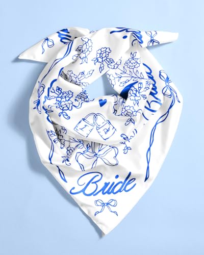 HOT ! xo, Fetti Bride Head Scarf, 27x27 in | Bachelorette Bandana, Bridal Headwear, Bach Party Accessory, Bridesmaid Gift, White Wedding Handkerchief, Something Blue Silk Hat