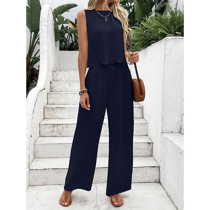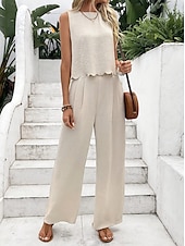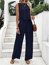 More information about Women's Fashion Pants Sets Sleeveless Round Neck Solid Color Lace up Backless Bow Casual Daily Black Dark Navy Orange Summer Regular Fit