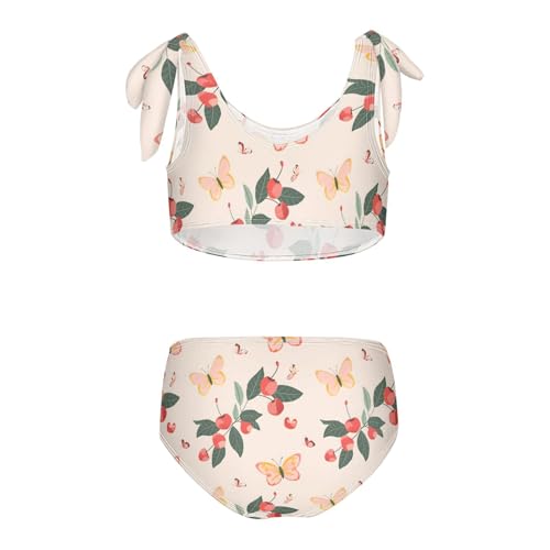 Cherry Butterfly Girls Two Piece Tankini Swimsuits Summer Bathing Suit Beach Swimwear Set 1
