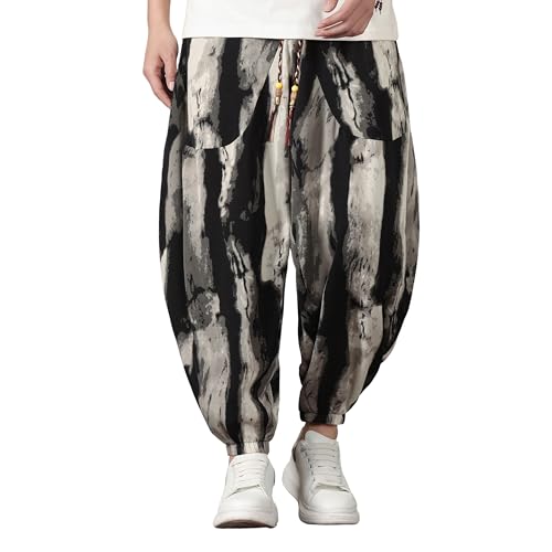 HOT ! PRIJOUHE Harem Pants for Men Casual Drawstring Yoga Pants Boho Loose Fit Tapered Cropped Trousers with Pockets