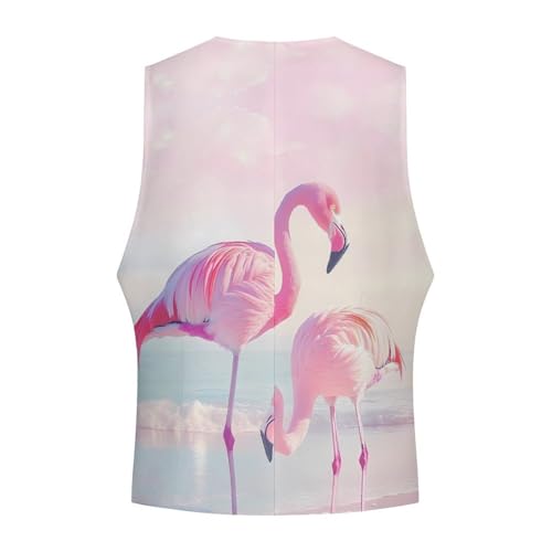 Flamingo Beach Men's Suit Vests Business Formal Dress Vest V-Neck Waistcoat for Wedding Casual 1