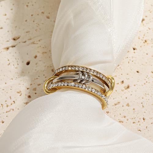 • **Versatile Styling**: Featuring an interlocking design, these two-tone rings can be worn stacked together or separated across different fingers, offering endless styling possibilities. It’s the missing link in your jewelry box!