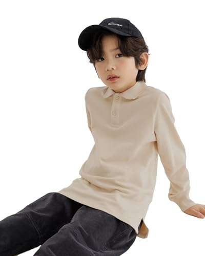 CUNYI Boys Long Sleeve Pique Polo Shirt School Uniform Button Closure Kids Golf Tops Cotton 1