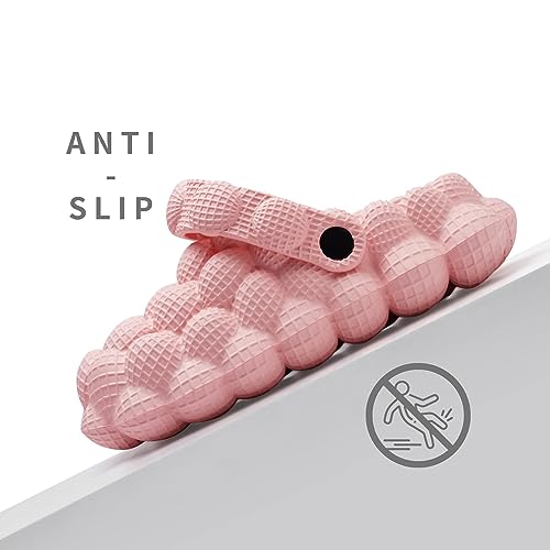 • * Comfy & Non-Slip:Our kids bubble slides are made of high-quality premium EVA material, which has excellent flexibility,durability,lightweight,comfortable,breathable,waterproof and easy to clean. And the non-slip sole will keep balance when showers or walking on pools or other wet floor.