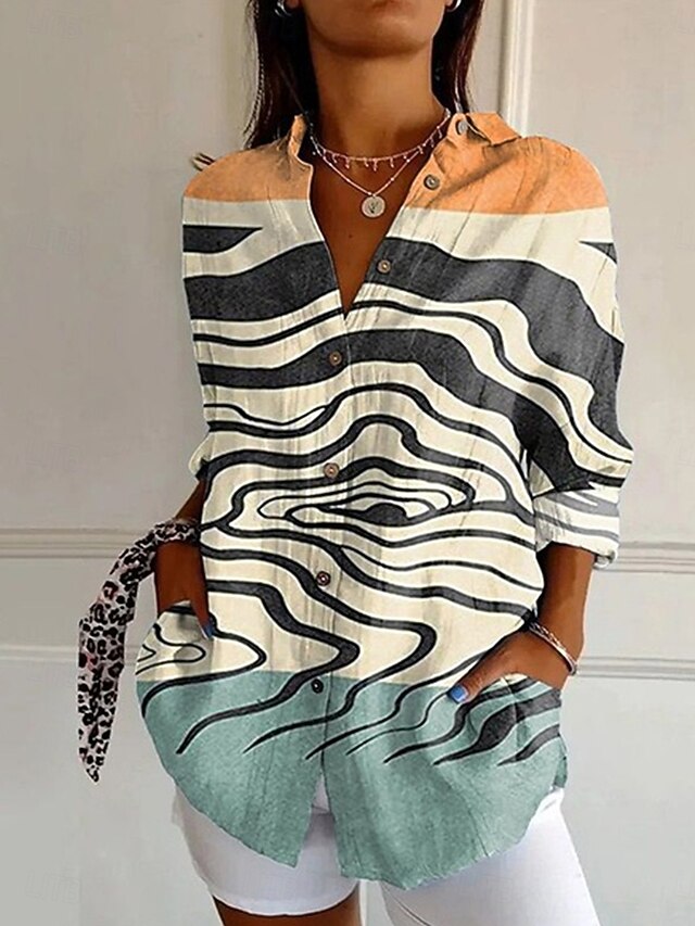 Women's Shirt Graphic Geometric Vintage Daily Casual Long Sleeve Bishop Sleeve Shirt Collar Regular Tops Daily Holiday Print Sage Green Orange Green Khaki Summer Spring 19