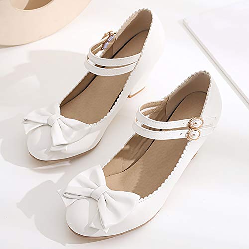 LUXMAX Womens Double Strap Lolita Bow Mary Janes Pumps Block Heel Rockabilly Shoes 4