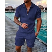 More information about Men's Polo Shirts Set Going out golf shirts Quarter Zip Short Sleeve Streetwear Sportswear Waves Textured Zipper Spring & Summer Slim Black Yellow Pink Red Navy Blue Blue Polo Shirts