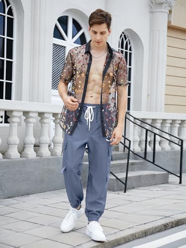 OYOANGLE Men's Cargo Pants Drawstring Elastic Waist Flap Pocket Casual Street Pants 6