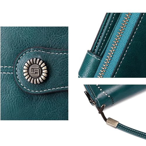 Women's Wallet Rfid Blocking Leather 3-fold Clutch Wallet Credit Card Holder Ladies Travel Purse Large Capacity Clutch Bag(Peacock blue) 3