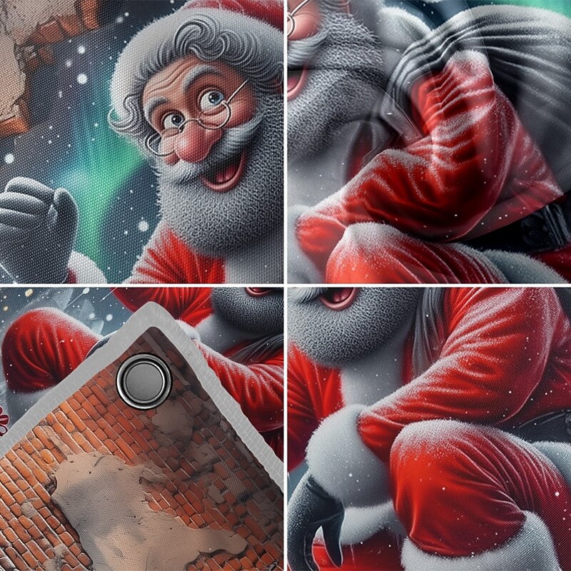 Christmas Garage Door Cover Winter Holiday Decoration Drapes with Santa Claus Delivering Gifts Print for Home Entryway Living Room Bedroom Indoor Outdoor Festive Seasonal Home Decor 3