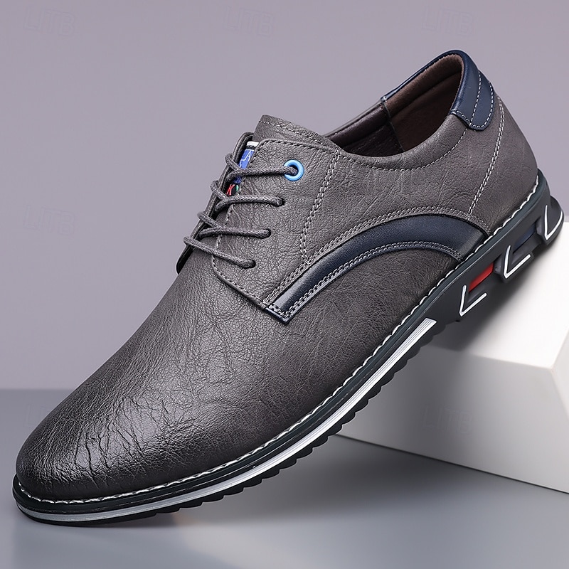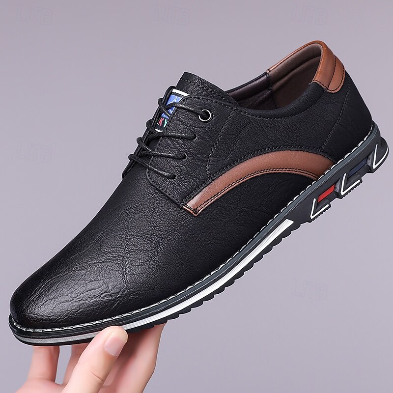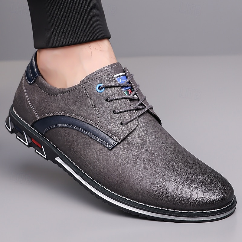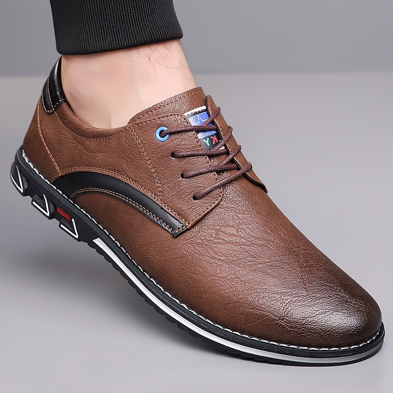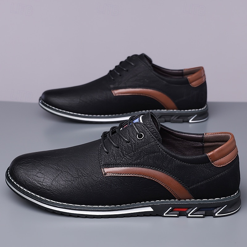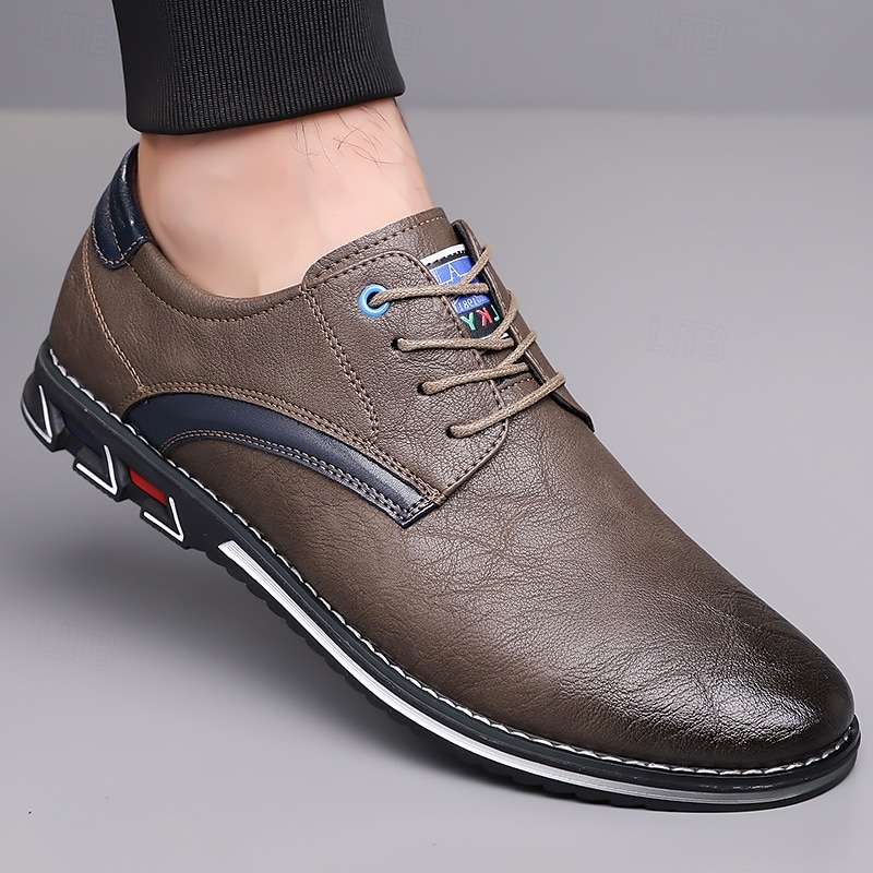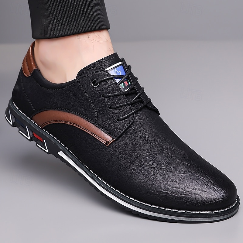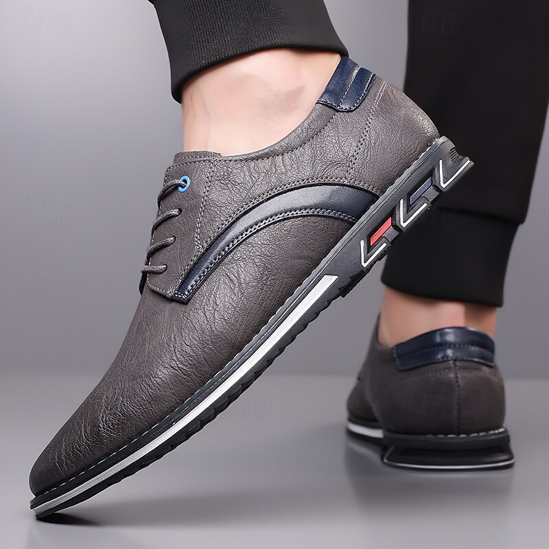 Highlights [Fabric] Expertly crafted from high-quality PU leather, these men's sneakers feature a sleek upper that offers both durability and a refined appearance, making them suitable for a variety of occasions. [Fit] Designed with a traditional lace-up closure, these sneakers provide an adjustable and secure fit, ensuring comfort for prolonged wear. [Design Highlights] The elegant stitching along the edges lends a sophisticated touch, while the subtle black accents on the side introduce a contemporary flair. The round toe shape adds classic style, and the textured rubber sole enhances slip resistance and stability. [Occasions] Perfect for everyday wear, these casual lace-up shoes are ideal for both formal and casual settings, from office environments to weekend outings, offering versatile style and dependable comfort. [Size Range] Available in US sizes 7 to 15, these sneakers cater to a wide range of foot sizes, ensuring that every man can find his perfect fit.