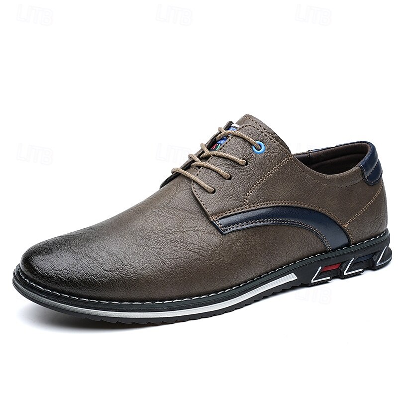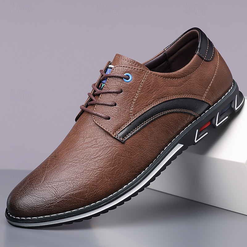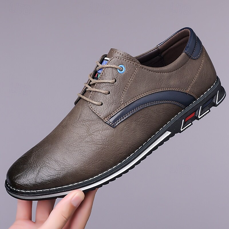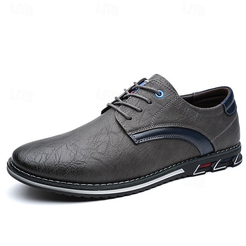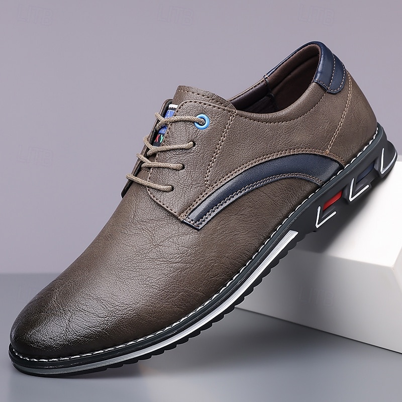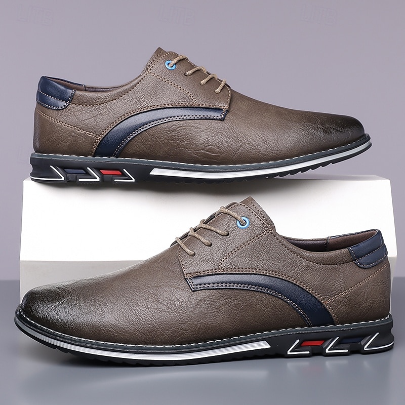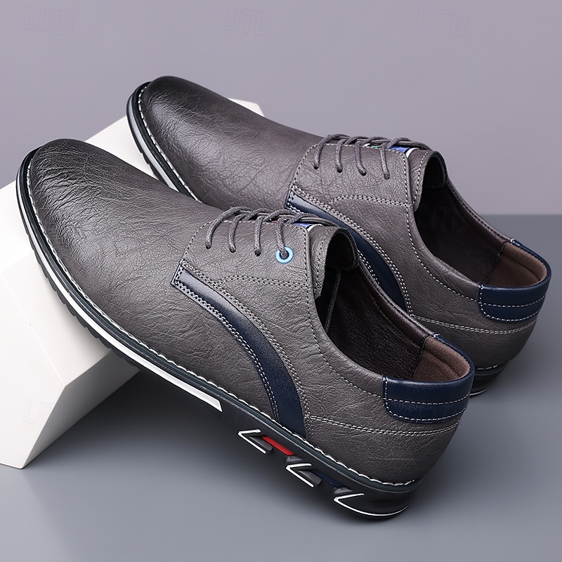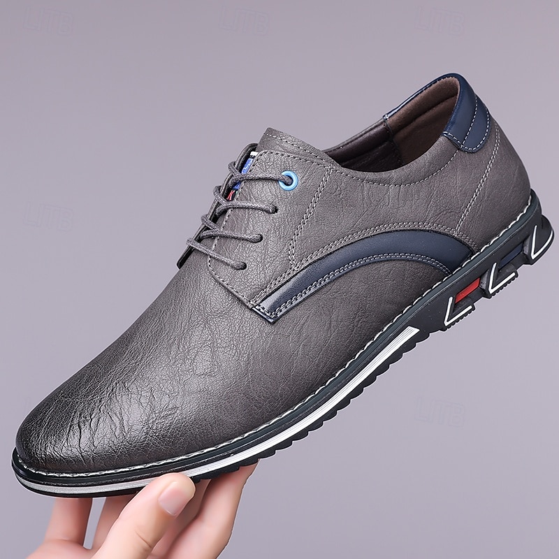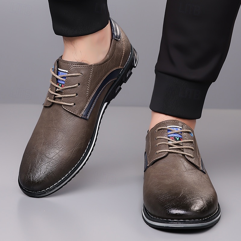 Highlights [Fabric] Expertly crafted from high-quality PU leather, these men's sneakers feature a sleek upper that offers both durability and a refined appearance, making them suitable for a variety of occasions. [Fit] Designed with a traditional lace-up closure, these sneakers provide an adjustable and secure fit, ensuring comfort for prolonged wear. [Design Highlights] The elegant stitching along the edges lends a sophisticated touch, while the subtle black accents on the side introduce a contemporary flair. The round toe shape adds classic style, and the textured rubber sole enhances slip resistance and stability. [Occasions] Perfect for everyday wear, these casual lace-up shoes are ideal for both formal and casual settings, from office environments to weekend outings, offering versatile style and dependable comfort. [Size Range] Available in US sizes 7 to 15, these sneakers cater to a wide range of foot sizes, ensuring that every man can find his perfect fit.