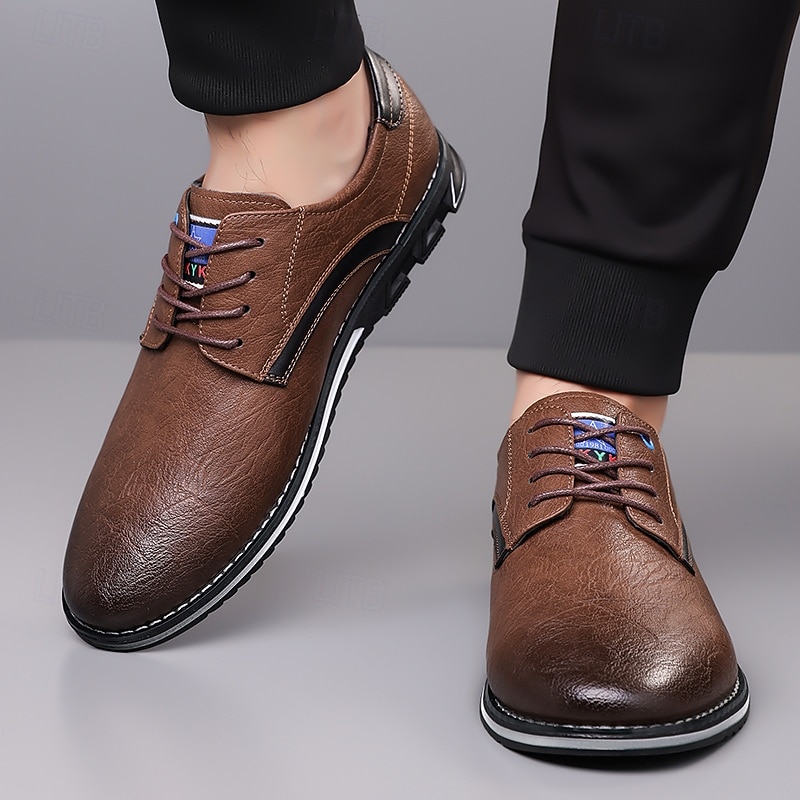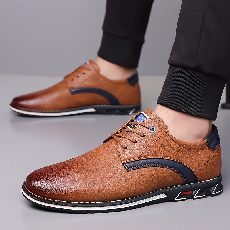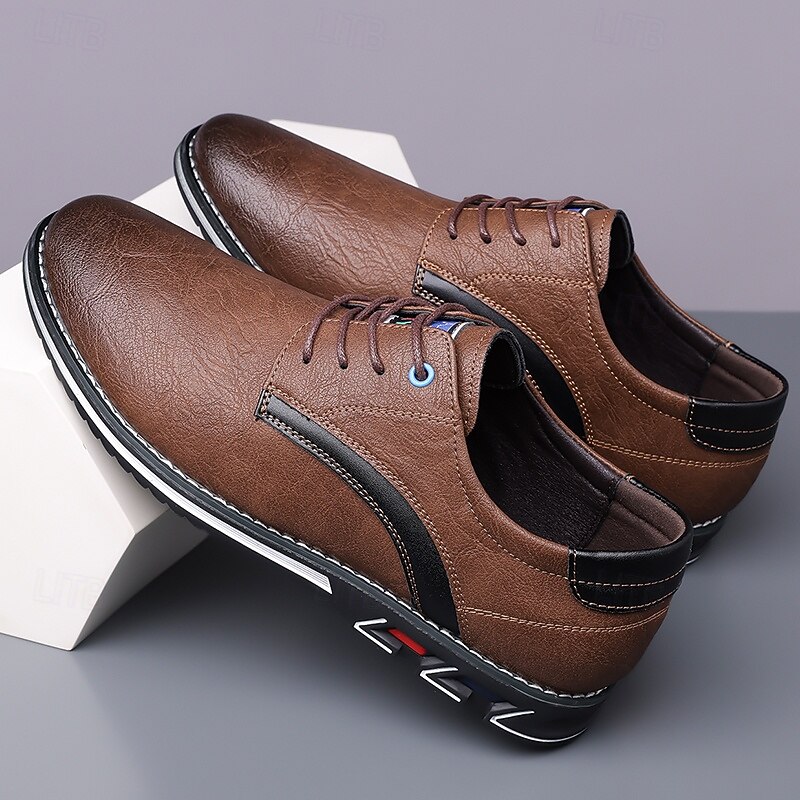 HOT ! Men's Casual Brown Lace-Up Shoes – Comfortable Everyday Sneakers with Black Accents and Textured Sole
