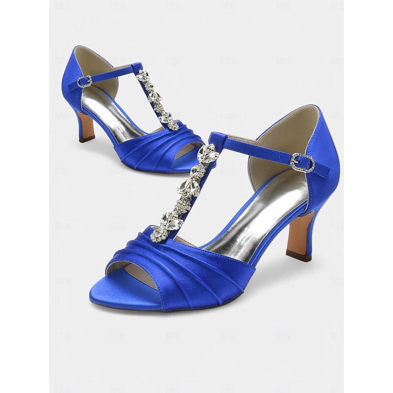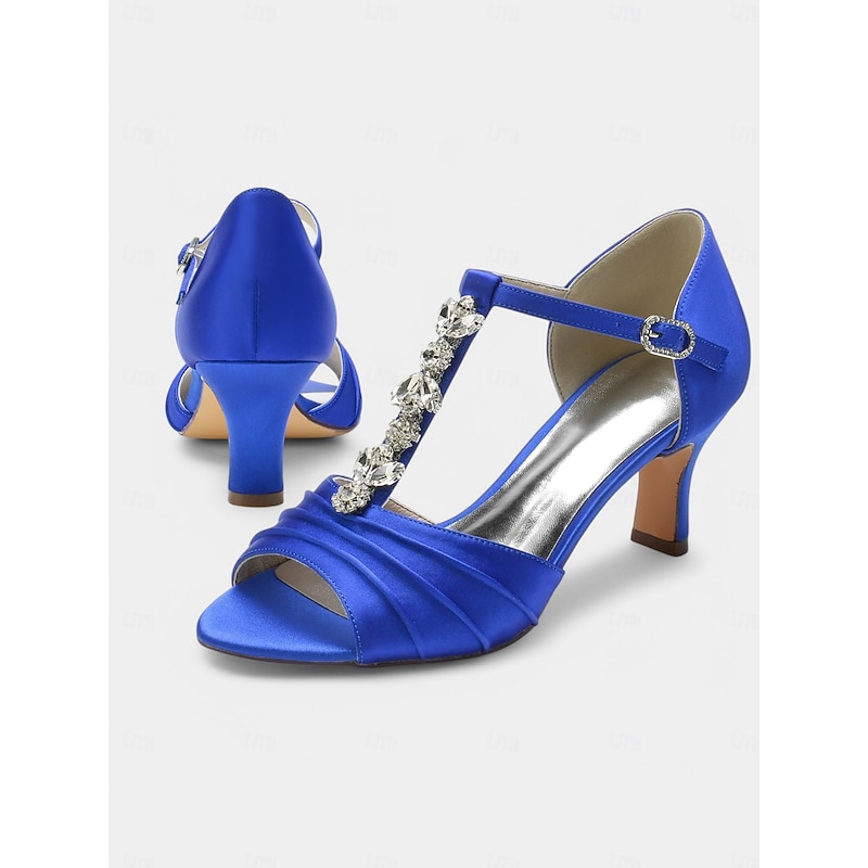 Highlights - Luxurious satin upper material - Stunning rhinestone embellishments - Chic open toe design - Comfortable rubber outsole