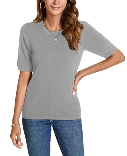Womens Short Sleeve Sweaters Tops Crew Neck Pullover Shirt Lightweight Knit Sweater Blouse 5